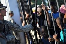 US Soldiers Hold Back Starving Haitians w/o "food tickets" at food distribution center